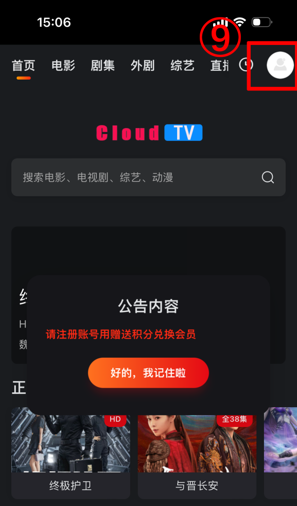2.下载完成后打开APP(CloudTV) 注册成功后可观看视频